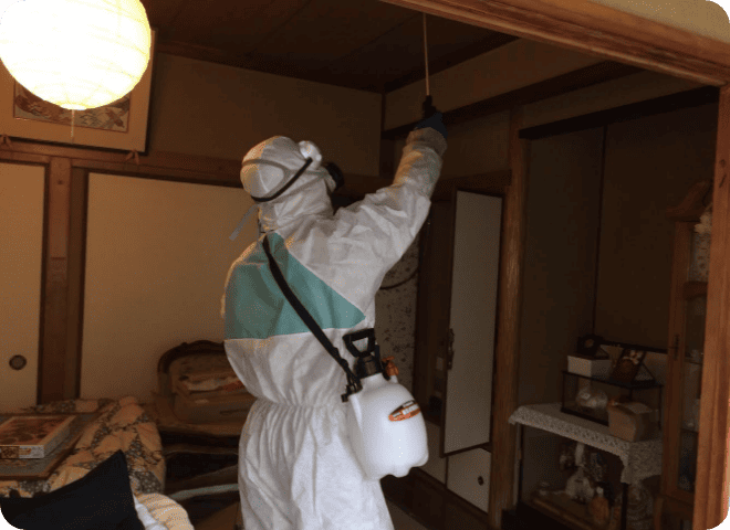 害虫や害獣の繁殖したお部屋、腐敗臭やカビ臭が染みついたお部屋でもお任せください。